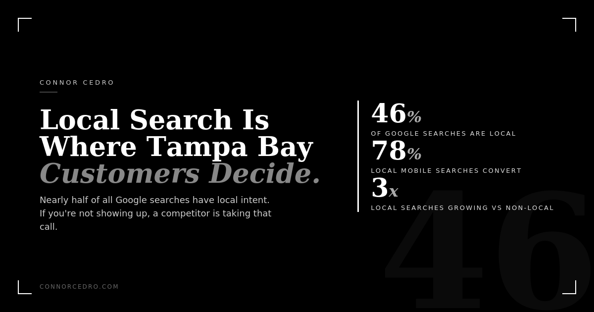 46% of all Google searches have local intent. That means nearly half the searches happening right now are from people looking for a business near them. In Tampa Bay, that number matters more than ever.