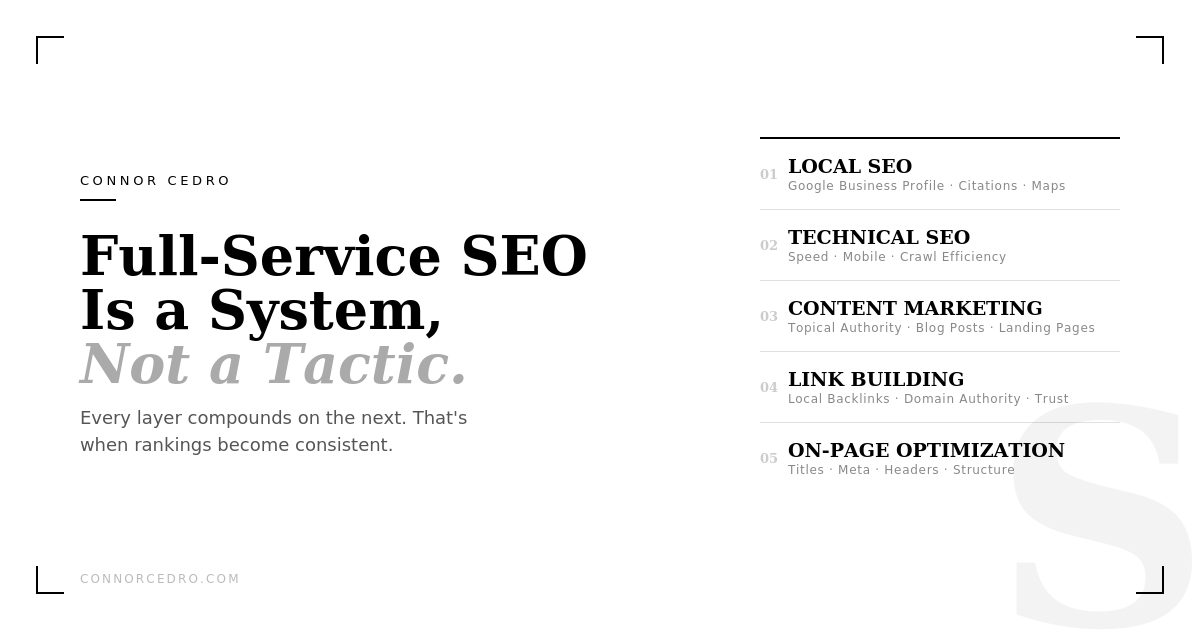 If you want optimized content, a clean technical foundation, strong local search presence, and a link building strategy that actually earns trust — that's what full-service SEO looks like.
