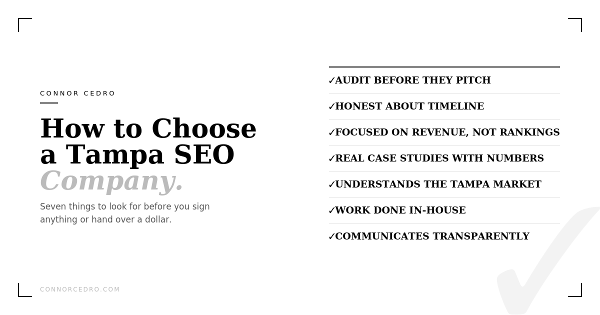 There are more SEO agencies in Tampa than ever. Here's how to filter the ones worth talking to from the ones that will waste your time and your budget.